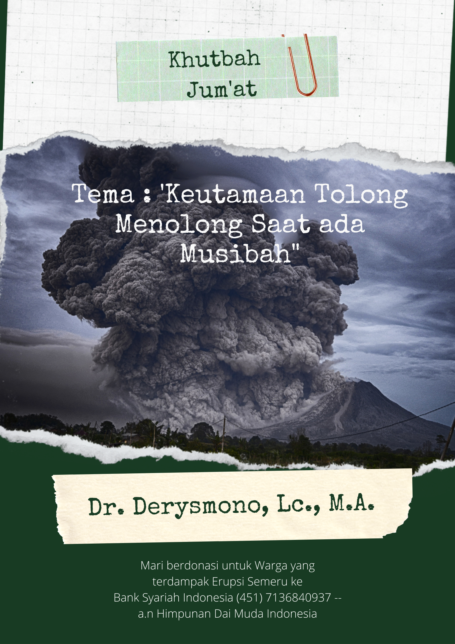 Khutbah Jum’at “Keutamaan Tolong Menolong Saat Ada Musibah” Oleh Dr. Derysmono, Lc., M.A.