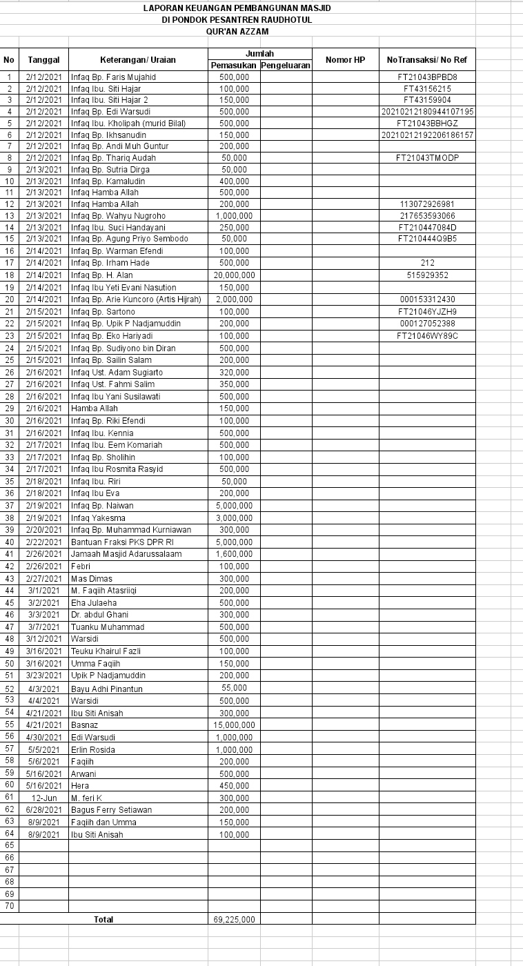 Wakaf Pembangunan Masjid : Rp.69.225.000