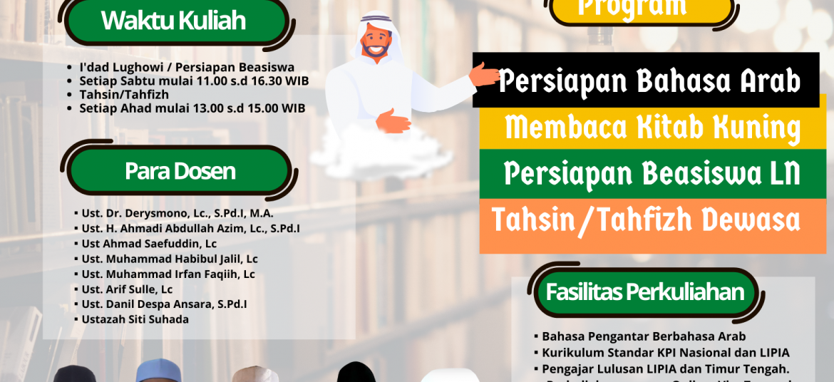 ================== *MA’HAD ROUDHATUL QUR’AN AZZAM* Penerimaan Mahasiswa Baru T.A 2021/2022 *Program Studi Bahasa Arab dan Studi Islam* ==================== *Ada Beasiswa Kuliah bagi yang memenuhi syarat* ================== Bagi kamu yang mau ✅ ingin kuliah bahasa Arab atau mau ke luar negeri tapi masih belum lancar ✅ sekedar belajar bisa bahasa Arab Segera daftar di *Ma’had Raudhotul … Continue reading Ma’had (Sekolah Tinggi)